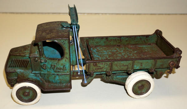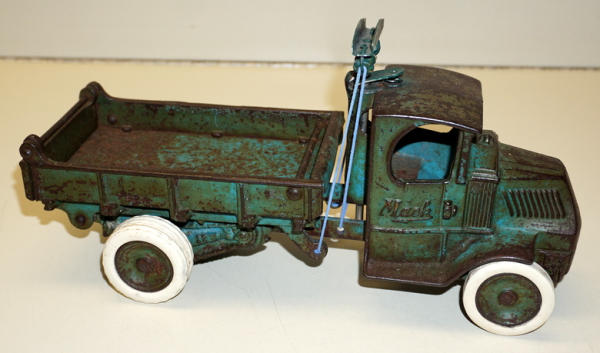 paint is kind of week, about 60% overall, dump mechanism has been replaced and repainted, no driver, 12" long