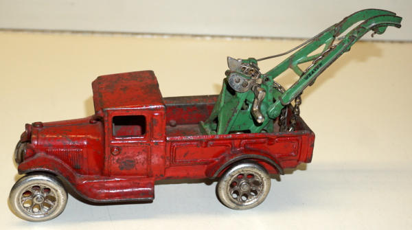 8" truck plus the wrecker, paint looks original, 70% or so, wheels might be replacements, wrecker, looks good