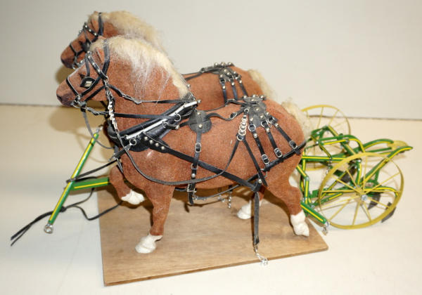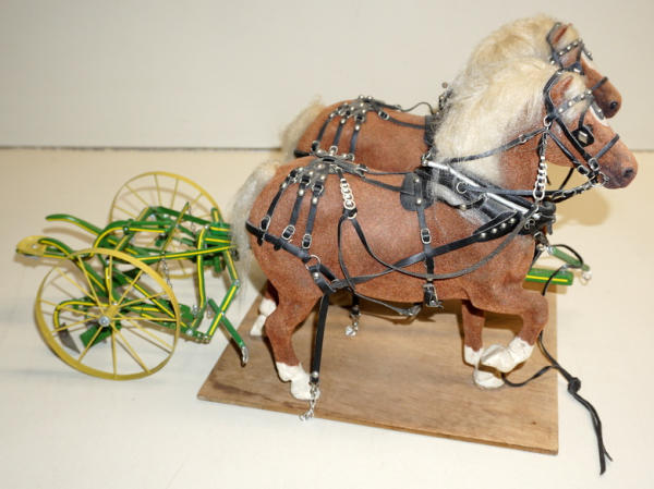 Hand built cultivator out of wood and metal is very nice, Breyer team that is custom flocked with full leather harness, nice set-up