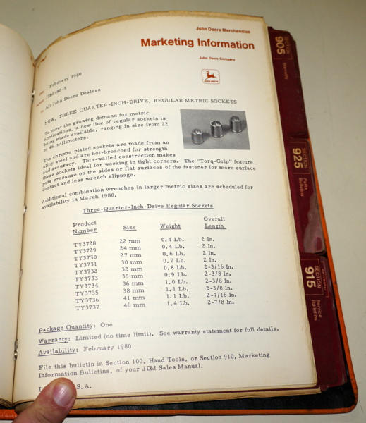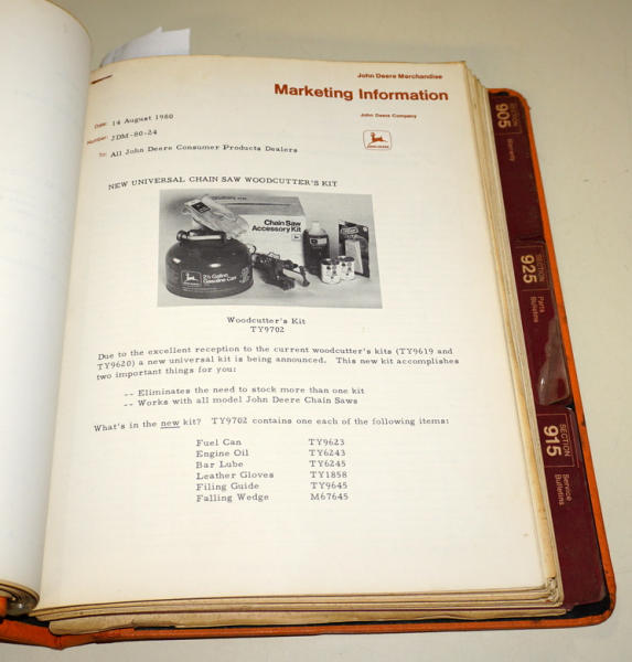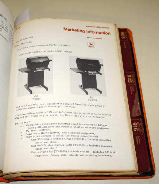 over 2" thick of material, full of Product Bulletins on Tools, L&G Equipment, Grills & consumer goods; binder has some general wear, contents have some general wear too, overall good condition
