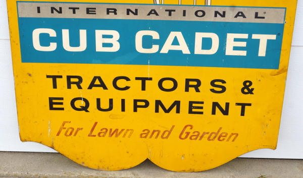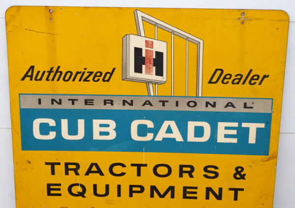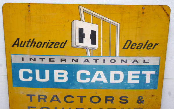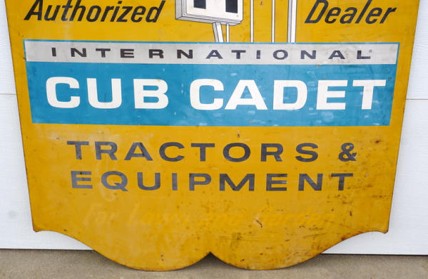 42"x42", used, one side rates about 7.5 condition, reverse side is 6.5 condition, sun faded; I think with a little wax and polish, it would improve this sign