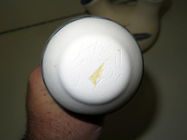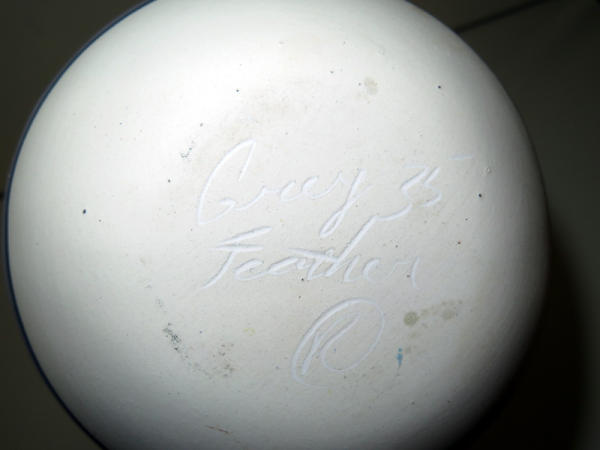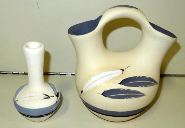 small vase 5" signed by Little Ray; Wedding vase 7.5" by Grey Feather; not same maker but look good together; selling for one money