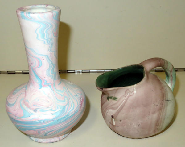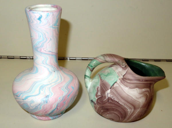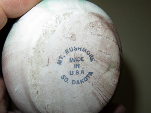 vase is 5.75" tall and unsigned; creamer 3.5" tall stamped Mt. Rushmore - So. Dakota; both nice; sell for one money