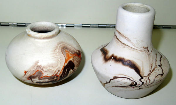 3.25" & 2.25" tall; both stamped Nemadji Pottery on bottom; sell for one money