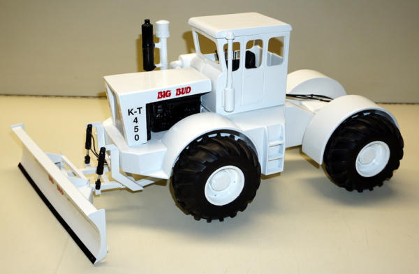 E-Tee Toys casting that has been restored & customized, levers & hyd hoses added, fully custom front blade that is adjustable mounted to the front, super sharp Bud with a blade!