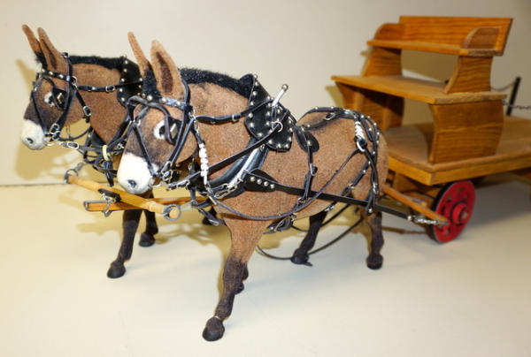 Breyer Size, full leather harness, flocked team, all wood wagon, very nice