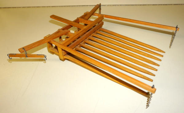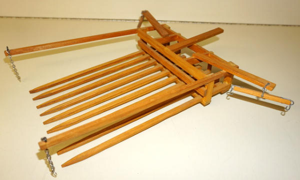 no horses, looks to be about 1/16th scale, about 16" long, 14" wide, all wood and hand built, very nice