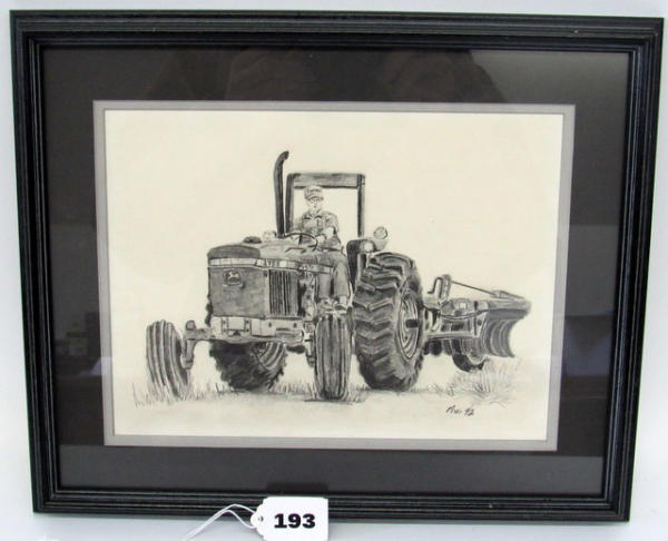 14" x 12" ; Framed Print 2755 JD w/Disk; Possibly a pencil piece;