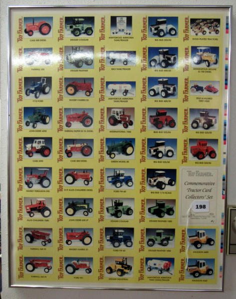 Toy Farmer Collector Card Sets 1 and 2 Full sheets, framed; 20" x 26" each; sells as a set, no shipping