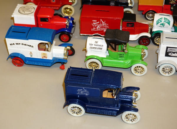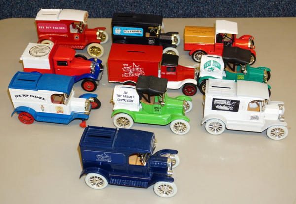 10X - various Sample Truck Banks from Toy Farmer or Toy Trucker & Construction; sells 10x the money