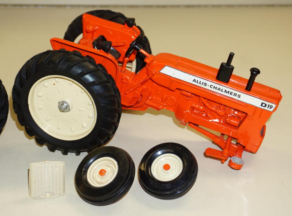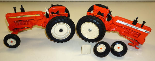 one with damaged front end is Resin Cast, looks to be very repairable, other is metal and decals are peeling some and front end is a little bent, sells 2x the money