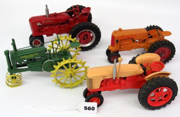 4X - Farmall M, JD A, MM Z, Case 400; the Case 400 needs the steering wheel re attached; These are the 1st 4 that Dennis Parker had produced! Farm Toy Hall of Famer & founder of Dakotah Toys; sells 4x the money