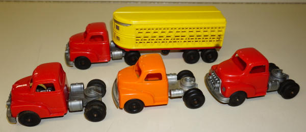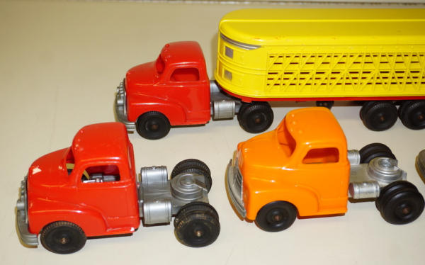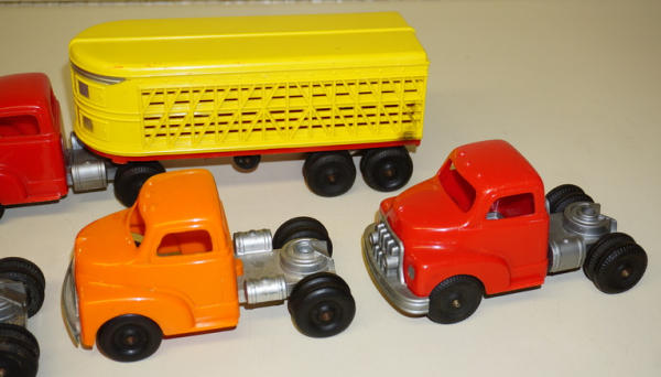 all nice, 1950's plastic toys, semi is 12" long, all to go