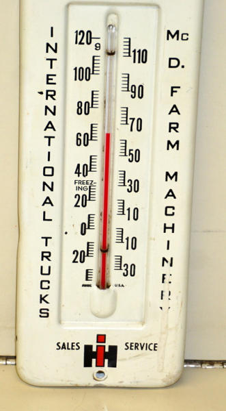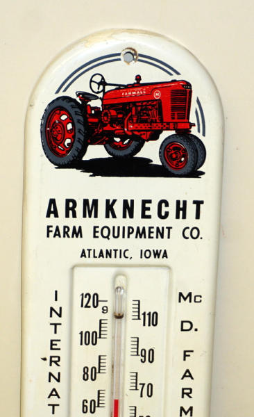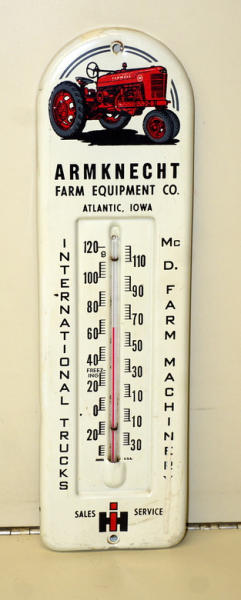 13" tall, pretty nice original with a light paint drip down the right side; has the tag on the back that this came from the Farmall-Land-USA collection originally