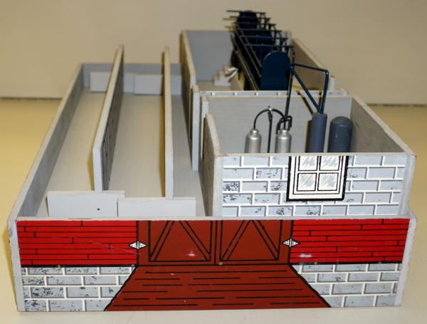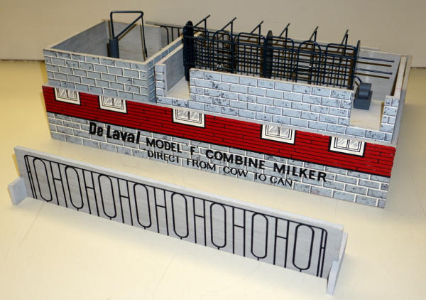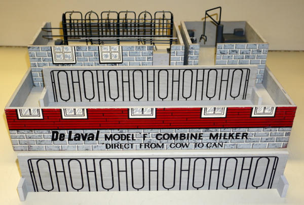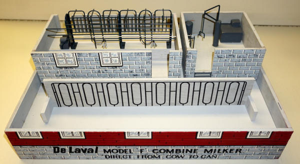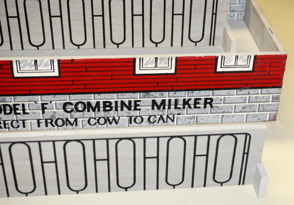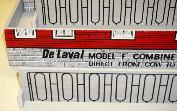 Wood with metal parts in the original wood carrying case; condition is outstanding and clean, base measures 18.5"x12", base, 5 pieces with the cases, super color, dream piece for the DeLaval or Dairy collection!