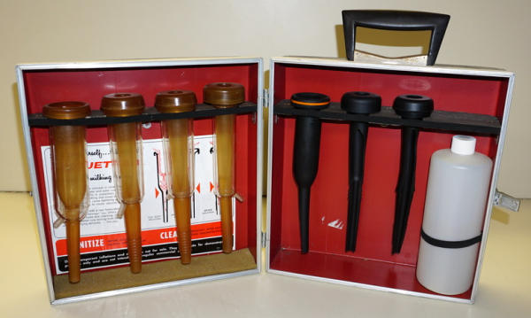 believe from 1970'ss, complete with nice label inside, hard plastic carrying case, full size inflations