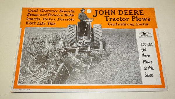 11"x7", light cardboard, shows the plow behind a non-JD tractor, some light wear