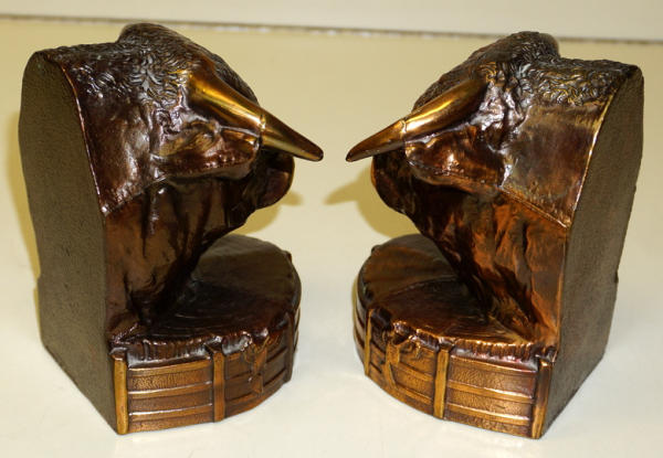 6" tall, copper finish, heavy pot metal, clean and nice, sells as a set