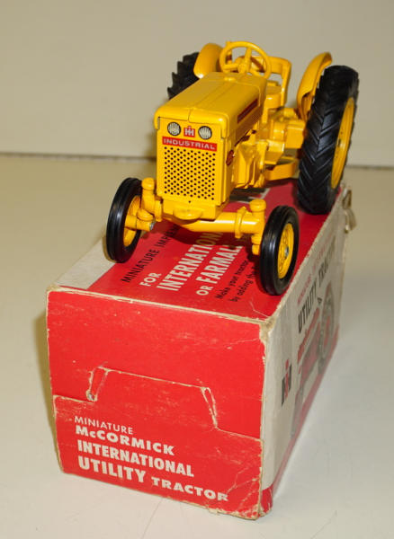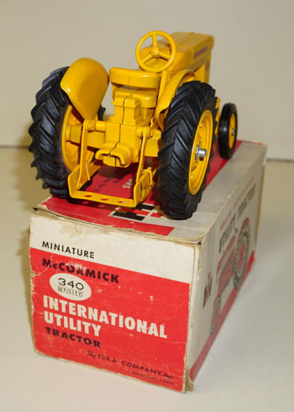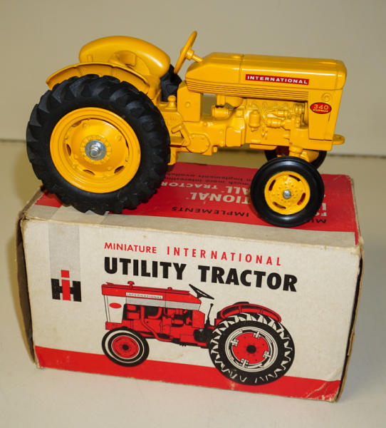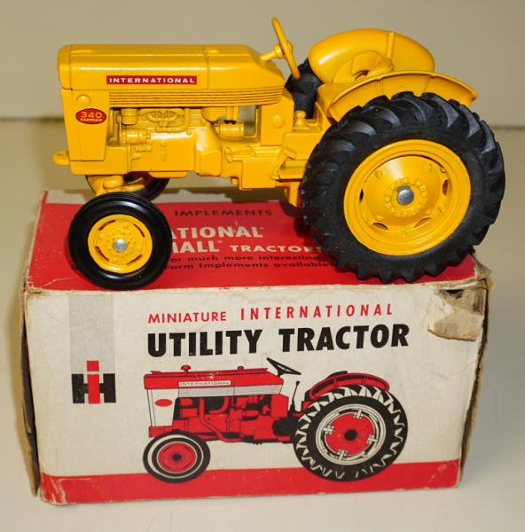 Tractor is a very nice repaint; box is complete, but pretty heavy wear, box rates 6.75 condition; not the correct box for this toy, but it's the way it came in, so we are going to leave it as a set