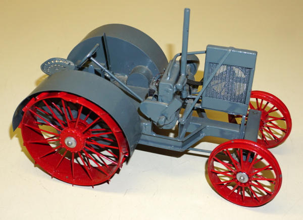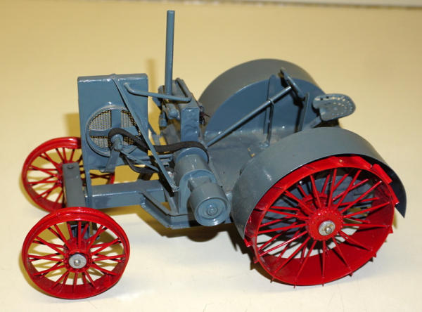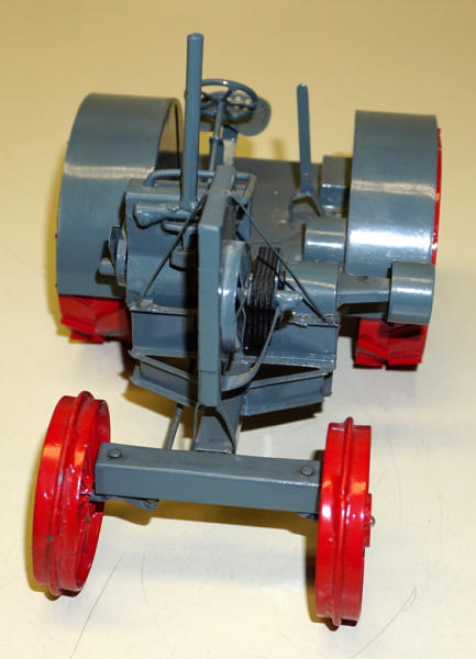 very cool early cross-motor tractor, not sure on the maker, but very finely built, includes a reprint of the original sales literature, has a lead tag on the drawbar, no shipping, too fragile; neat piece for the North Dakota farm collector!
