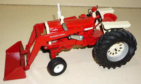 Older custom, built from an Ertl casting, upgraded tires & wheels, Ertl loader with hyd lines & reservoir tank, looks good