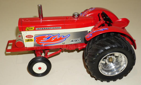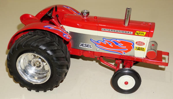 Built from Ertl body, alum side shields, front fuel tank, Chrome rims, simple built puller, but looks fine