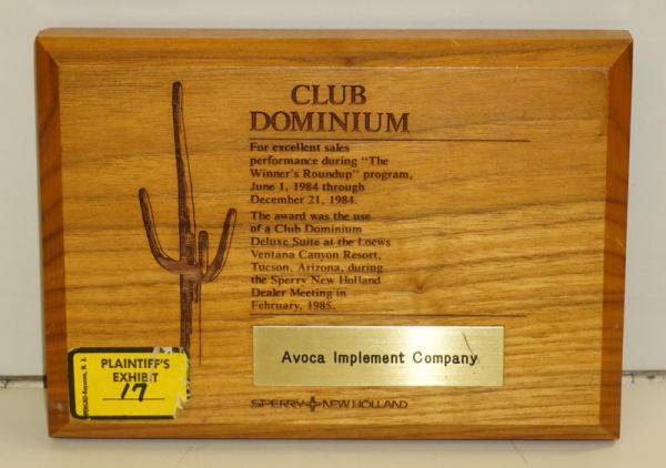 7"x5", excellent, has a Plaintiff's Exhibit sticker on the front; Jerry used this as evidence when he sued New Holland (and won!)