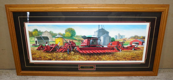 Signed & numbered, pro-framed & matted, 40"x20", #131 of 450 made, shows pickers through new combine