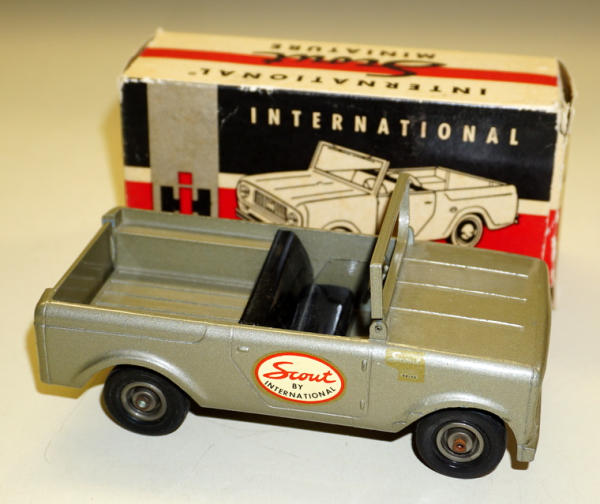 mint toy, nice box, has "International Scout" Tailgate decal and grey rims, box rates 8 condition
