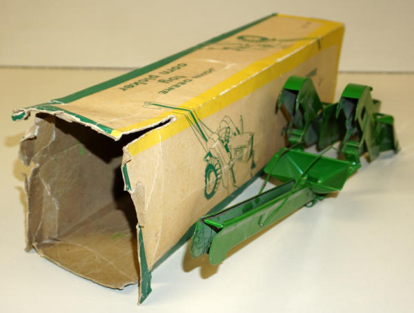near mint original toy, box is missing flaps on one end and very heavy wear, box rates 6 condition