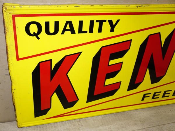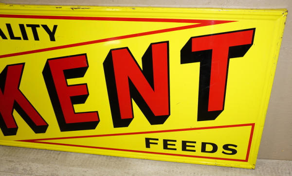 earlier logo, 45"x24", has some rust on the left edge and some storage wear, rates 8 condition overall