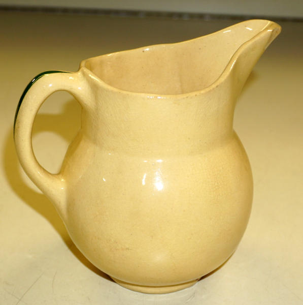 5.5" tall, has a large chip on the back side of the spout, displays fine
