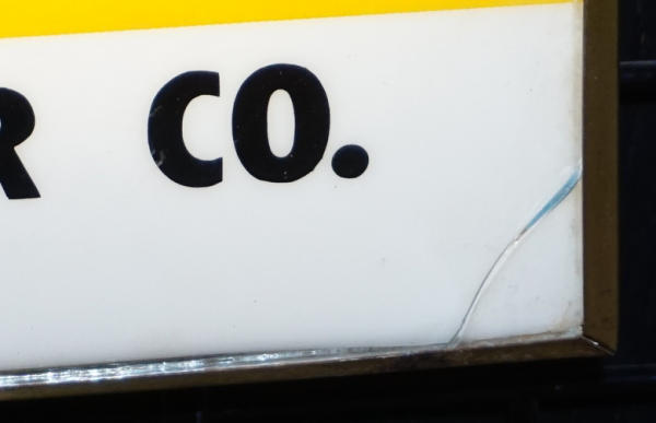 very clean and nice original clock, has a small crack in the lower right piece of the outer glass, 15"x18", dated 1963; no shipping