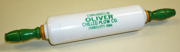 I believe this is a fantasy piece, old original milk glass rolling pin, but the Oliver was added later, looks good, but I don't think an original piece of Oliver Advertising
