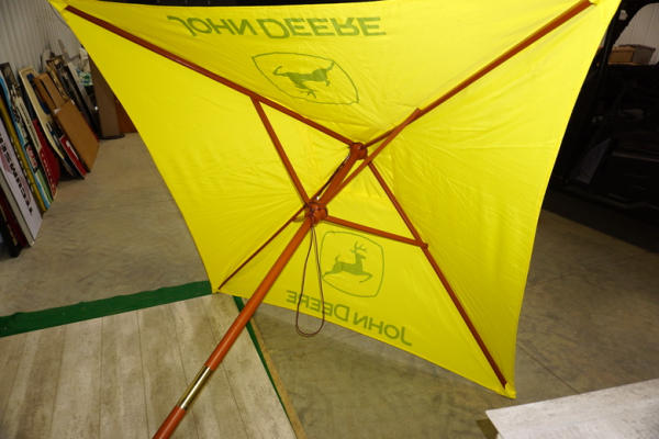 brand new in the box, modern logo, umbrella is about 68"x68", pole is about 8' tall