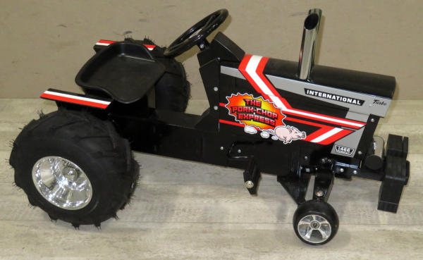 Ertl body fully customized and decaled, polished aluminum wheels, big rubber tires, front weights, twin stacks, super cool and 1-of-akind pedal!