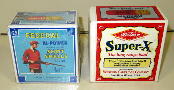 both 2.75"; Federal 8-shot and sealed in plastic; Western 6-shot, 2pc box and sealed; both nice; full 50 rounds total; sell 2x the money