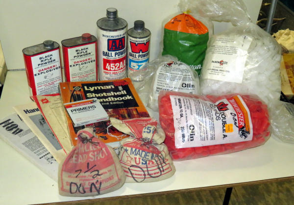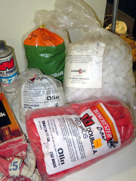 includes partial bottles of powder, 76 Winchester Shotshell primers W209; 12ga. & .410ga. Wads and more; sell for one money; LOCAL PICKUP ONLY, NO SHIPPING OF POWDER OR PRIMERS