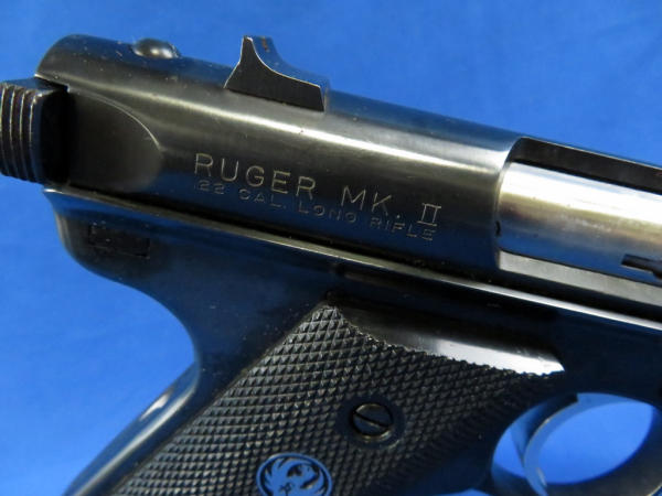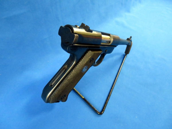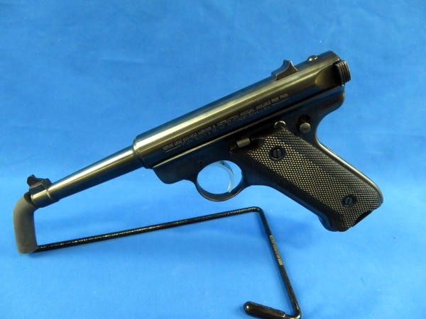 4.75" Tapered BBL; original hard plastic checkered grips; includes 3 magazines; has some very minor spotting on the right side of the barrel; original box; SN#212-82800