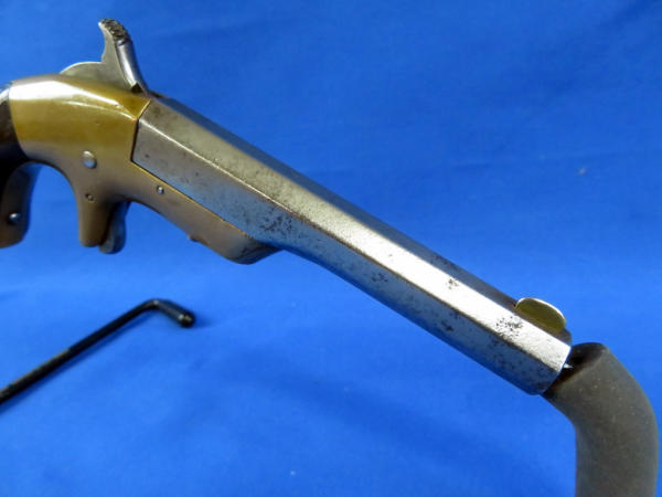 not sure on maker; only marked with SN#5266 on frame & barrel; 3-5/8" Oct. nickeled barrel; brass frame; wood grips; spur trigger; NO FFL Transfer needed