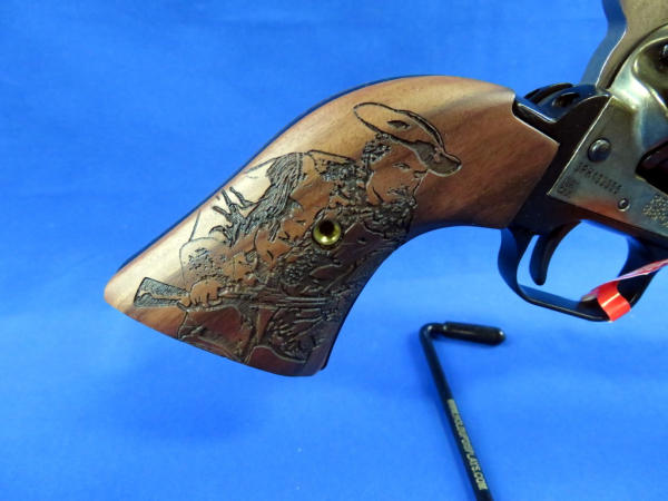 4.75" BBL; mint & unfired; great engraved Buffalo Bill wood grips; case hardened receiver; box has great graphics & color; nice looking gun; SN#3PH133355