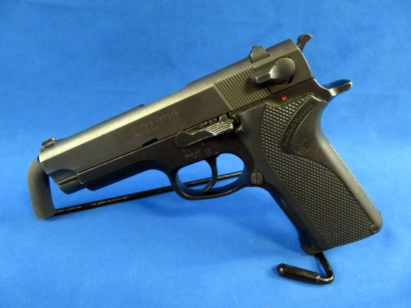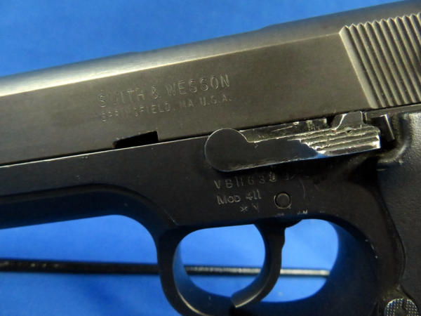 4" Stainless Barrell; front night sight; has been fired and has some scratches on frame & slide; plastic checkered factory grips; two magazines; SN#VBH6309