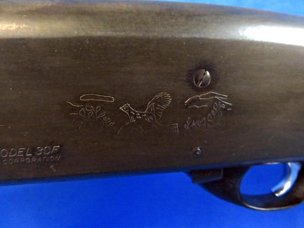 28" BBL; smooth action; has some very minor surface rusting on barrel, with some work should clean up quite a bit; factory engraved receiver; very nice wood; 3" chamber; MC; no SN# but has patent No.3,005,263