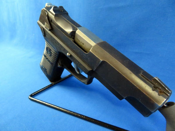 4.5" stainless barrel; has been used; has some bluing loss and minor rust spotting on stop of slide, should clean up; night sights; SN#307-59531