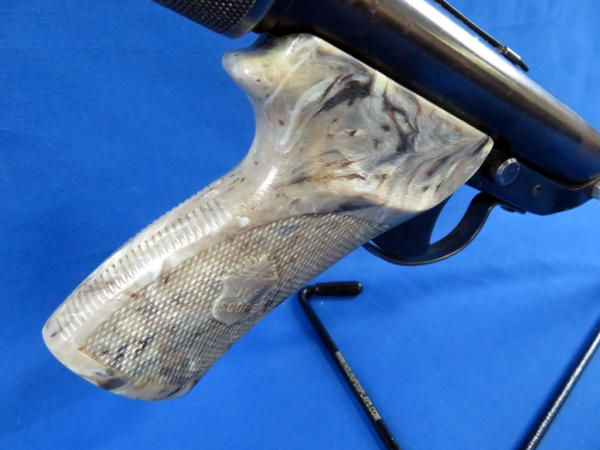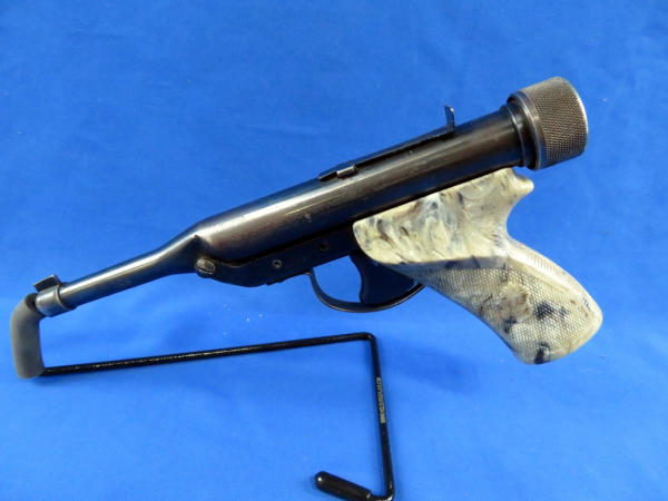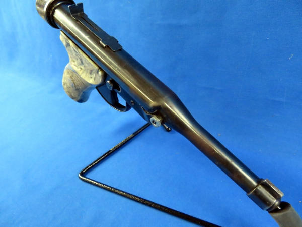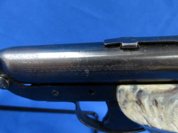 top barrel breaks away from frame to pump gun; shell enters from the back of the gun; factory grips; neat piece; SN#841559
