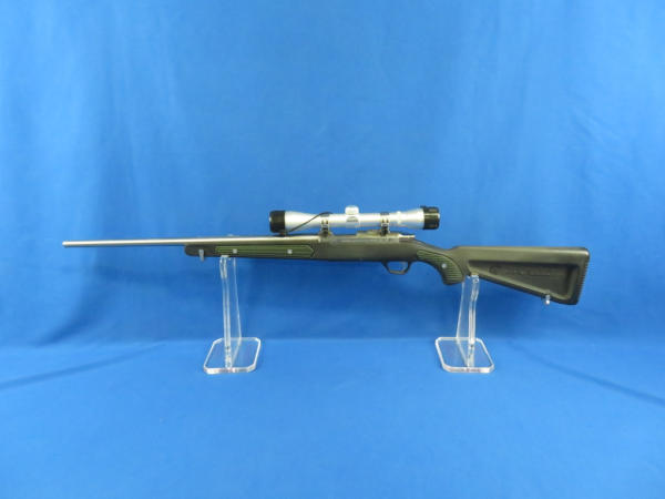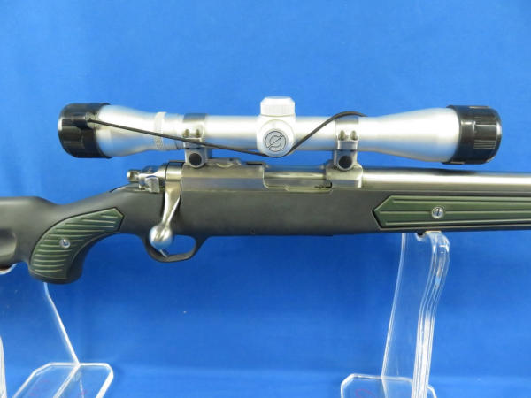 20" Stainless Barrel; smooth action; skeleton stock w/dark green accents; Simmons scope; removable magazine; SN#701-04649