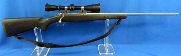24" Stainless barrel; very smooth action; black synthetic stock; overall like new condition; Leupold 4-12x40mm scope is very clear; nylon sling; great set-up; SN#791-39878