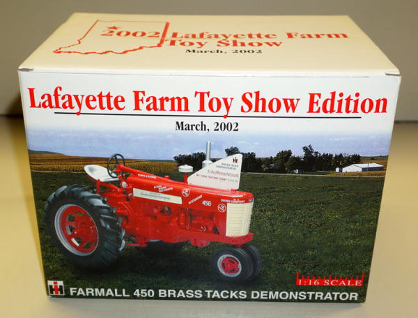 "Just in time for Christmas" Farm Toy LIVE Auction 15 Ohio Street, Wakonda, SD 57073 Great Mix of Farm Toys! This includes a dispersal from the Al VanKley Estate of Ankney IA--Farm Toy Hall of Fame Member! Short Early bird session onsite at 9:45! Catalog | Terms of Auction | Print Catalog Catalog | Terms Back to Catalog #2 – IH Farmall 450 Brass Tacks Demo '02 Lafayette Show NIB More Details NIB Location: 15 Ohio Street, Wakonda SD, 57073 High Bid: $55.00 – 1206farmall bidding history Bidding has closed on this lot Back to Catalog
