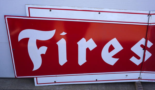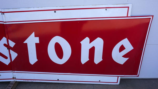 12' long when assembled, in two pieces, some light edge wear and around the grommets, but overall a very nice and clean sign; dated 1972; no shipping, local pickup only in the next 30-days
