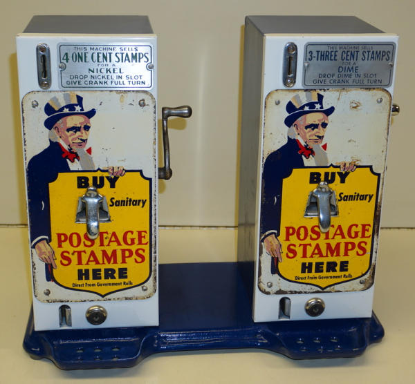 most of the machine has been repainted, original paint signs on the front, 13" tall, 15" wide, cast iron base